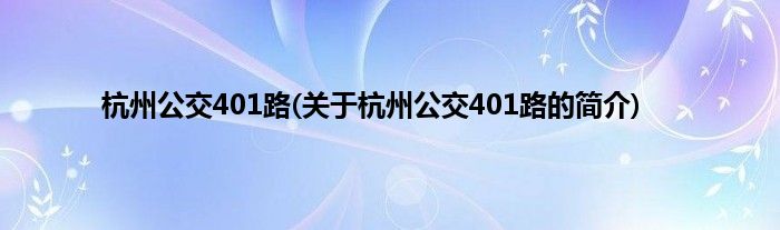 本文关于杭州公交401路的简介就讲解完毕,希望对大家有所帮助。