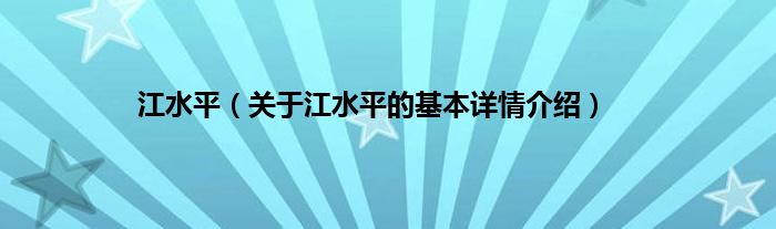本文关于江水平的基本详情介绍就讲解完毕,希望对大家有所帮助。