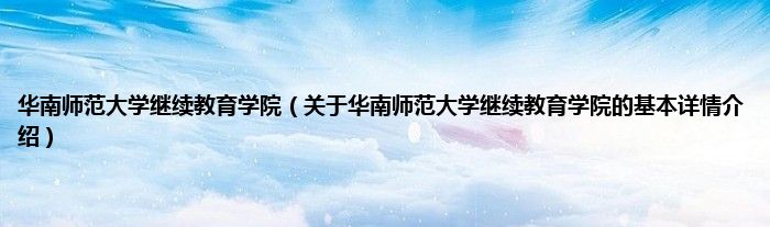 本文关于华南师范大学继续教育学院的基本详情介绍就讲解完毕,希望对大家有所帮助。