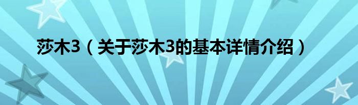 最佳答案大家好我是小蝌蚪,莎木3,关于莎木3的基本详情介绍很多人还不知道,那么现在让我们一起来看看吧!1、《莎木3》(Shenmue3),属于《莎木》系列游戏,由SEGA公司开发发行。2、于2015年索尼E3专场游戏发布会发布,为莎木系列正统续作。本文关于莎木3的基本详情介绍就讲解完毕,希望对大家有所帮助。