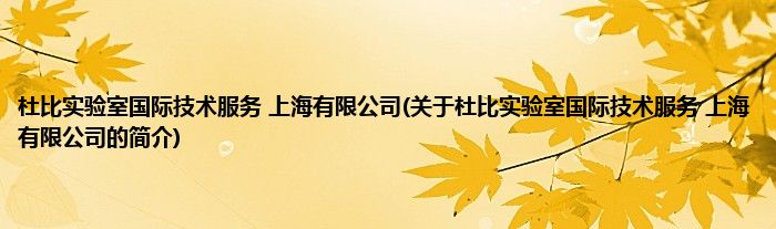 本文关于杜比实验室国际技术服务 上海有限公司的简介就讲解完毕,希望对大家有所帮助。