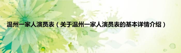 本文关于温州一家人演员表的基本详情介绍就讲解完毕,希望对大家有所帮助。