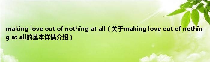 本文关于making love out of nothing at all的基本详情介绍就讲解完毕,希望对大家有所帮助。