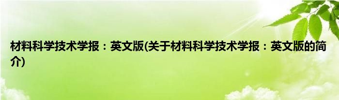 大家好,材料科学技术学报:英文版,关于材料科学技术学报:英文版的简介很多人还不知道,现在让我们一起来看看吧!