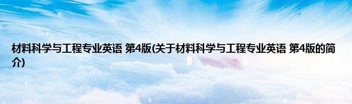 本文关于材料科学与工程专业英语 第4版的简介就讲解完毕,希望对大家有所帮助。
