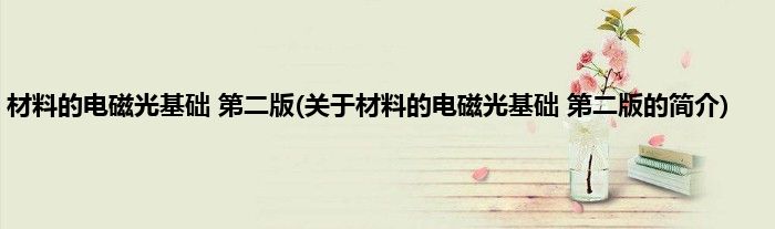 大家好,材料的电磁光基础 第二版,关于材料的电磁光基础 第二版的简介很多人还不知道,现在让我们一起来看看吧!