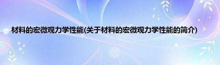 大家好,材料的宏微观力学性能,关于材料的宏微观力学性能的简介很多人还不知道,现在让我们一起来看看吧!