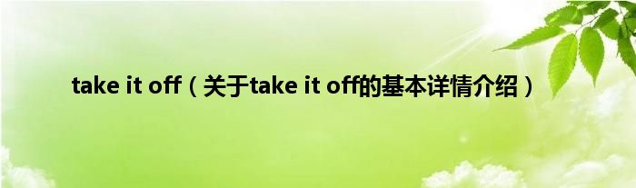 本文关于take it off的基本详情介绍就讲解完毕,希望对大家有所帮助。