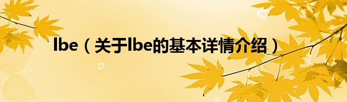 本文关于lbe的基本详情介绍就讲解完毕,希望对大家有所帮助。