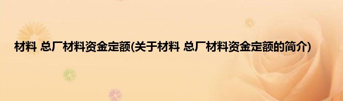 大家好,材料 总厂材料资金定额,关于材料 总厂材料资金定额的简介很多人还不知道,现在让我们一起来看看吧!