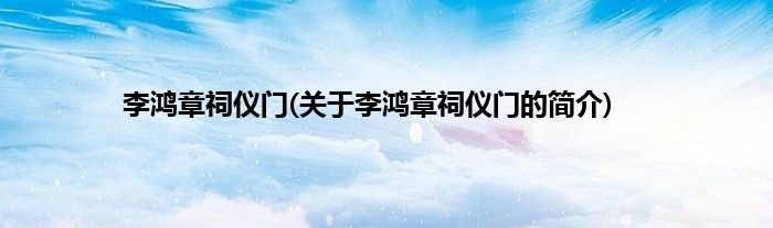 本文关于李鸿章祠仪门的简介就讲解完毕,希望对大家有所帮助。