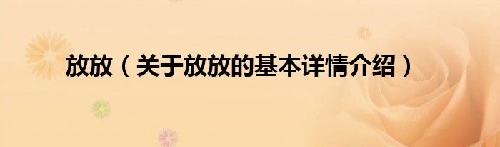 本文关于放放的基本详情介绍就讲解完毕,希望对大家有所帮助。