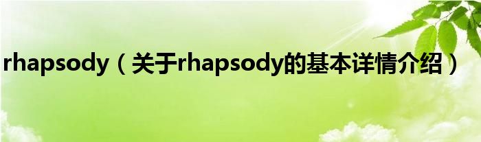 大家好我是小蝌蚪,rhapsody,关于rhapsody的基本详情介绍很多人还不知道,那么现在让我们一起来看看吧!
