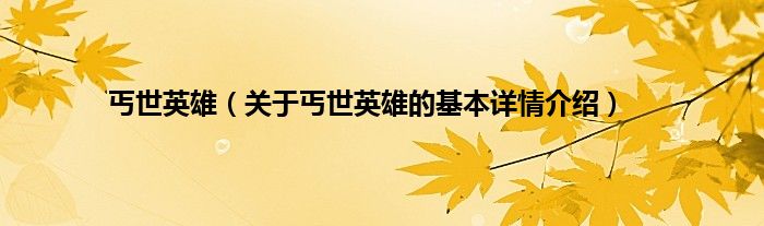 本文关于丐世英雄的基本详情介绍就讲解完毕,希望对大家有所帮助。