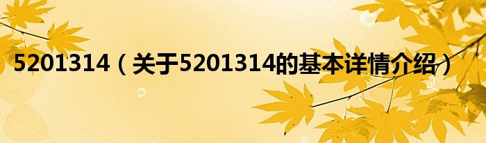 本文关于5201314的基本详情介绍就讲解完毕,希望对大家有所帮助。