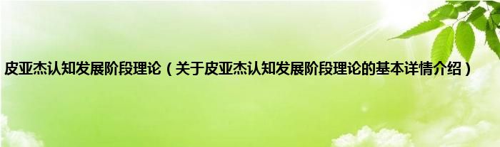 本文关于皮亚杰认知发展阶段理论的基本详情介绍就讲解完毕,希望对大家有所帮助。