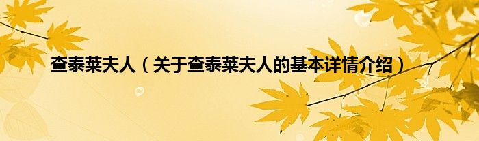 查泰莱夫人(关于查泰莱夫人的基本详情介绍)