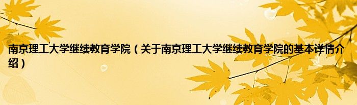 本文关于南京理工大学继续教育学院的基本详情介绍就讲解完毕,希望对大家有所帮助。