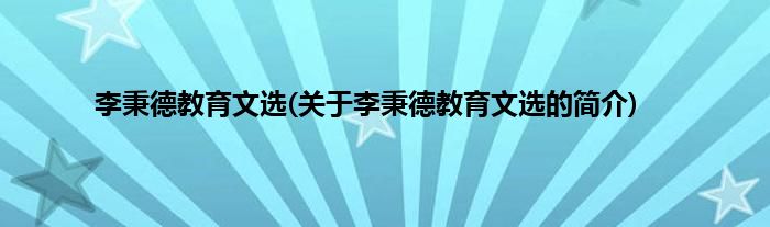 1、 《李秉德教育文选》作者是李秉德,教育科学出版社出版的书籍。