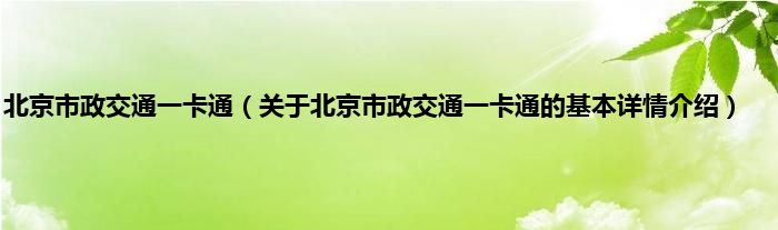 本文关于北京市政交通一卡通的基本详情介绍就讲解完毕,希望对大家有所帮助。