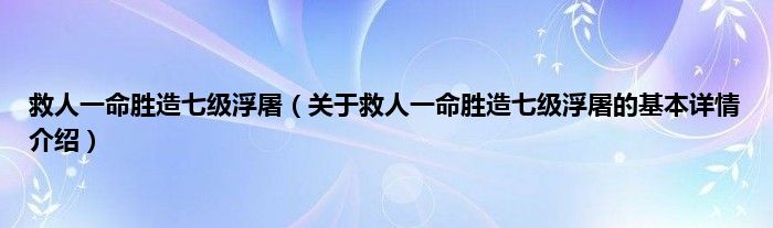 1、救人一命,胜造七级浮屠是一个汉语成语,意思是为死去的人造塔。