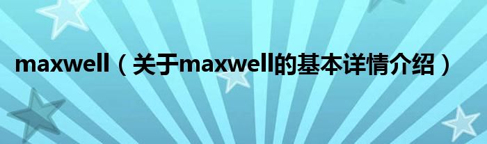 maxwell(关于maxwell的基本详情介绍)
