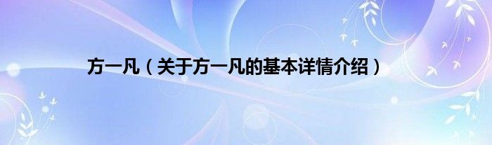 本文关于方一凡的基本详情介绍就讲解完毕,希望对大家有所帮助。