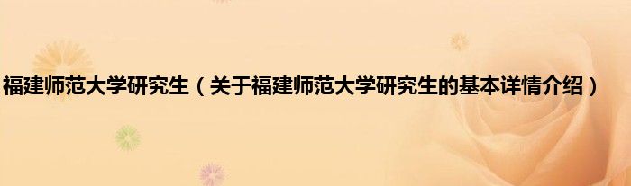 本文关于福建师范大学研究生的基本详情介绍就讲解完毕,希望对大家有所帮助。