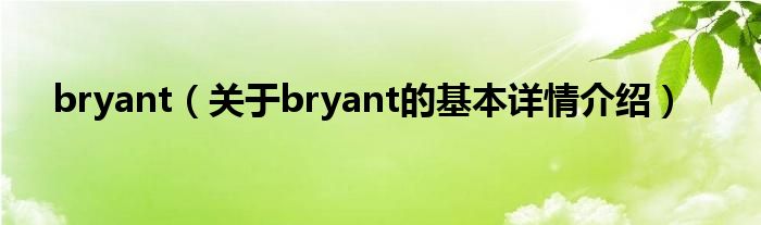 本文关于bryant的基本详情介绍就讲解完毕,希望对大家有所帮助。