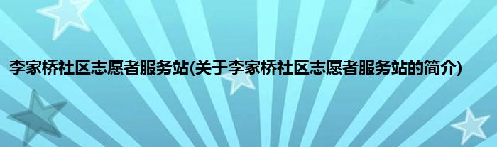 本文关于李家桥社区志愿者服务站的简介就讲解完毕,希望对大家有所帮助。
