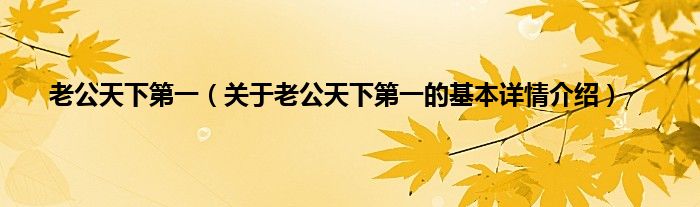 本文关于老公天下第一的基本详情介绍就讲解完毕,希望对大家有所帮助。