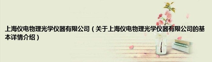 上海仪电物理光学仪器有限公司(关于上海仪电物理光学仪器有限公司的基本详情介绍)