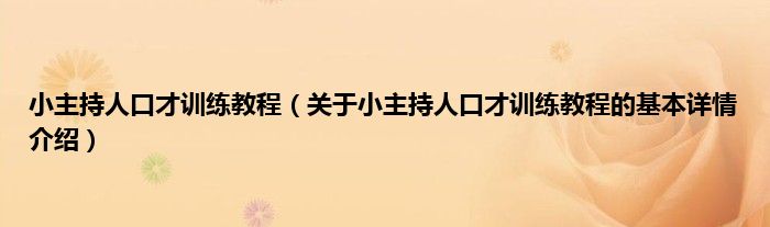 小主持人口才训练教程(关于小主持人口才训练教程的基本详情介绍)