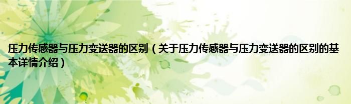 本文关于压力传感器与压力变送器的区别的基本详情介绍就讲解完毕,希望对大家有所帮助。