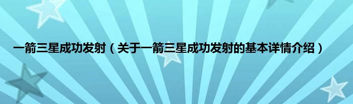 本文关于一箭三星成功发射的基本详情介绍就讲解完毕,希望对大家有所帮助。