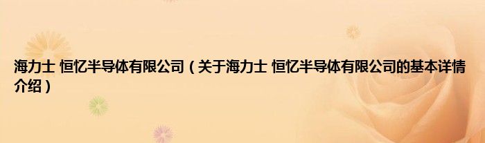 本文关于海力士 恒忆半导体有限公司的基本详情介绍就讲解完毕,希望对大家有所帮助。