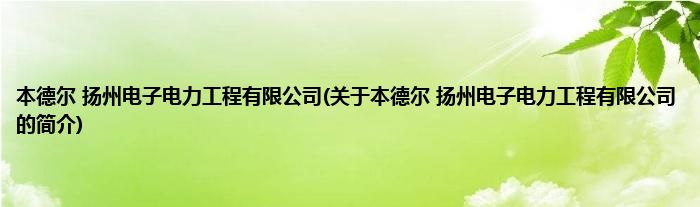 大家好,本德尔 扬州电子电力工程有限公司,关于本德尔 扬州电子电力工程有限公司的简介很多人还不知道,现在让我们一起来看看吧!