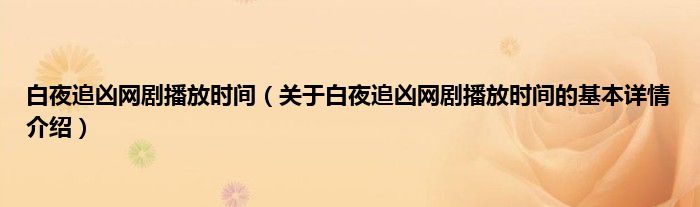 本文关于白夜追凶网剧播放时间的基本详情介绍就讲解完毕,希望对大家有所帮助。