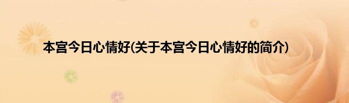 大家好,本宫今日心情好,关于本宫今日心情好的简介很多人还不知道,现在让我们一起来看看吧!