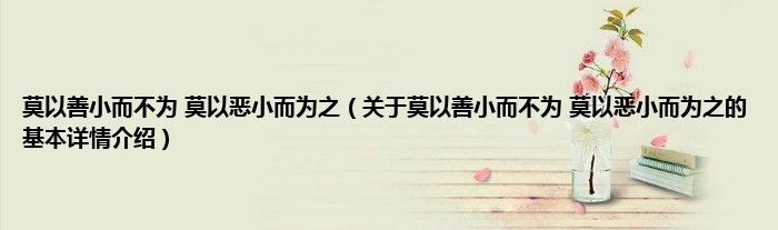 莫以善小而不为 莫以恶小而为之(关于莫以善小而不为 莫以恶小而为之的基本详情介绍)