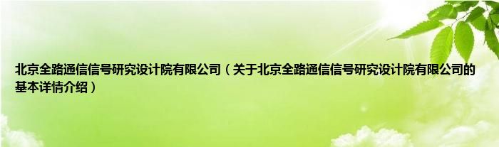 本文关于北京全路通信信号研究设计院有限公司的基本详情介绍就讲解完毕,希望对大家有所帮助。