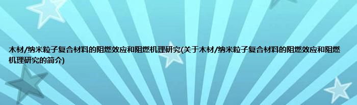 本文关于木材/纳米粒子复合材料的阻燃效应和阻燃机理研究的简介就讲解完毕,希望对大家有所帮助。