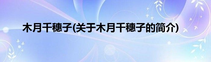 本文关于木月千穗子的简介就讲解完毕,希望对大家有所帮助。