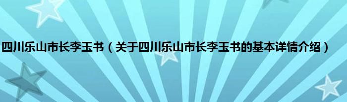 本文关于四川乐山市长李玉书的基本详情介绍就讲解完毕,希望对大家有所帮助。