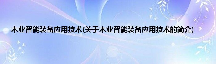 大家好,木业智能装备应用技术,关于木业智能装备应用技术的简介很多人还不知道,现在让我们一起来看看吧!