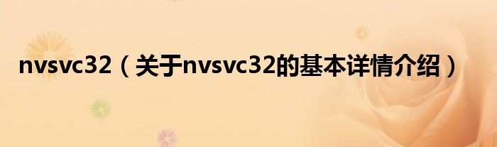本文关于nvsvc32的基本详情介绍就讲解完毕,希望对大家有所帮助。