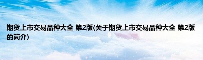 大家好,期货上市交易品种大全 第2版,关于期货上市交易品种大全 第2版的简介很多人还不知道,现在让我们一起来看看吧!