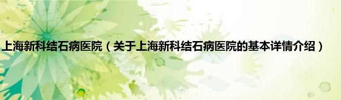 本文关于上海新科结石病医院的基本详情介绍就讲解完毕,希望对大家有所帮助。