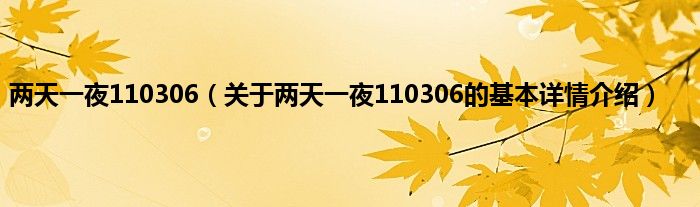本文关于两天一夜110306的基本详情介绍就讲解完毕,希望对大家有所帮助。
