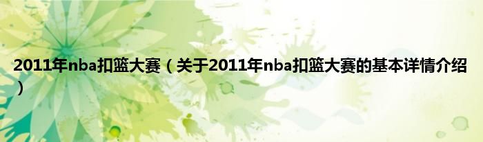 本文关于2011年nba扣篮大赛的基本详情介绍就讲解完毕,希望对大家有所帮助。